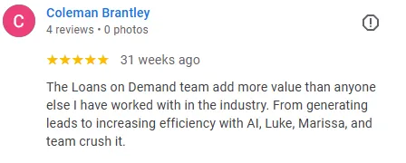 Copyright © 2026 Loans On Demand, LLC. All rights reserved. Loans On Demand, LLC, is a sales and marketing education and training company. We believe, with education, business leaders can be better prepared to make advertising and investing decisions. Success is dependent on external factors such as implementation and effort of the participating business. We do not make claims on what you should expect to make without training. All material is intellectual property and protected by copyright. Any duplication, reproduction, or distribution is strictly prohibited.
