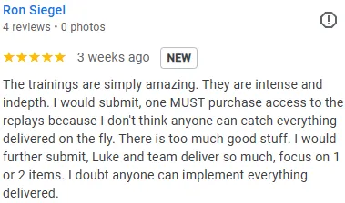 Show up live. Have your laptop open. Do the exercises as we do them. And seriously consider VIP because you will want to rewatch sections. There's a lot of ground to cover in 3 days.