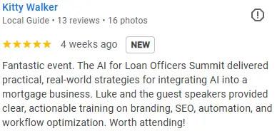 That's what this summit is. 3 days, 9+ hours of live training, from people who do this every day in real mortgage businesses.